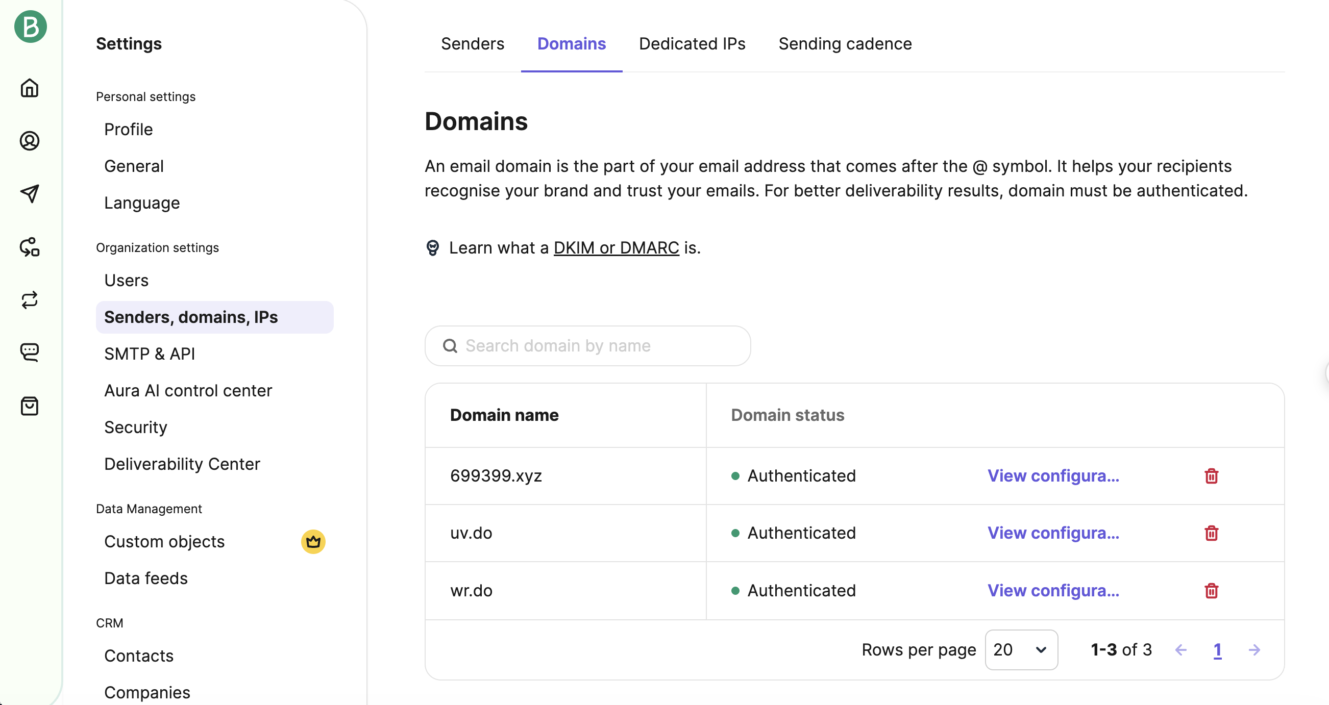 After that, you can bind your domain on the Domain page in the Brevo console. Follow the prompts to add DNS records to complete the configuration: